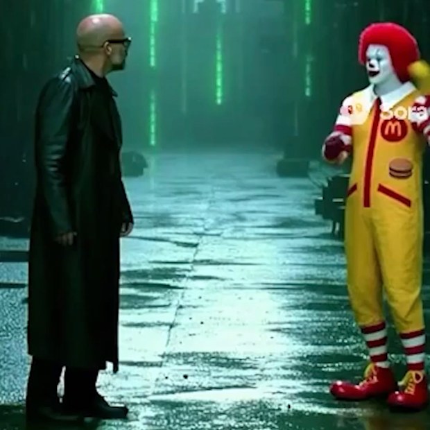 In one hyper-realistic nine-second video, we were shown skydiving (and grinning) with pizzas as parachutes. In another, Eli hit a game-winning home run in a baseball stadium full of robots. In yet another, Mike was caught in a Matrix-style duel against Ronald McDonald, using cheeseburgers as weapons.