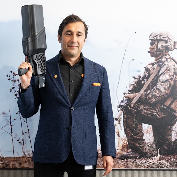 We’ve rearranged the conference room in service of a good photo, but there is no busy minder or team of personal assistants hovering at the edges of the scene to restore order. For a guy running one of the world’s fastest-growing defence businesses, Vornik is disarmingly unmediated, understated, a self-described maths nerd who by luck and happenstance found himself in military hardware. A man who tidies up his own mess.