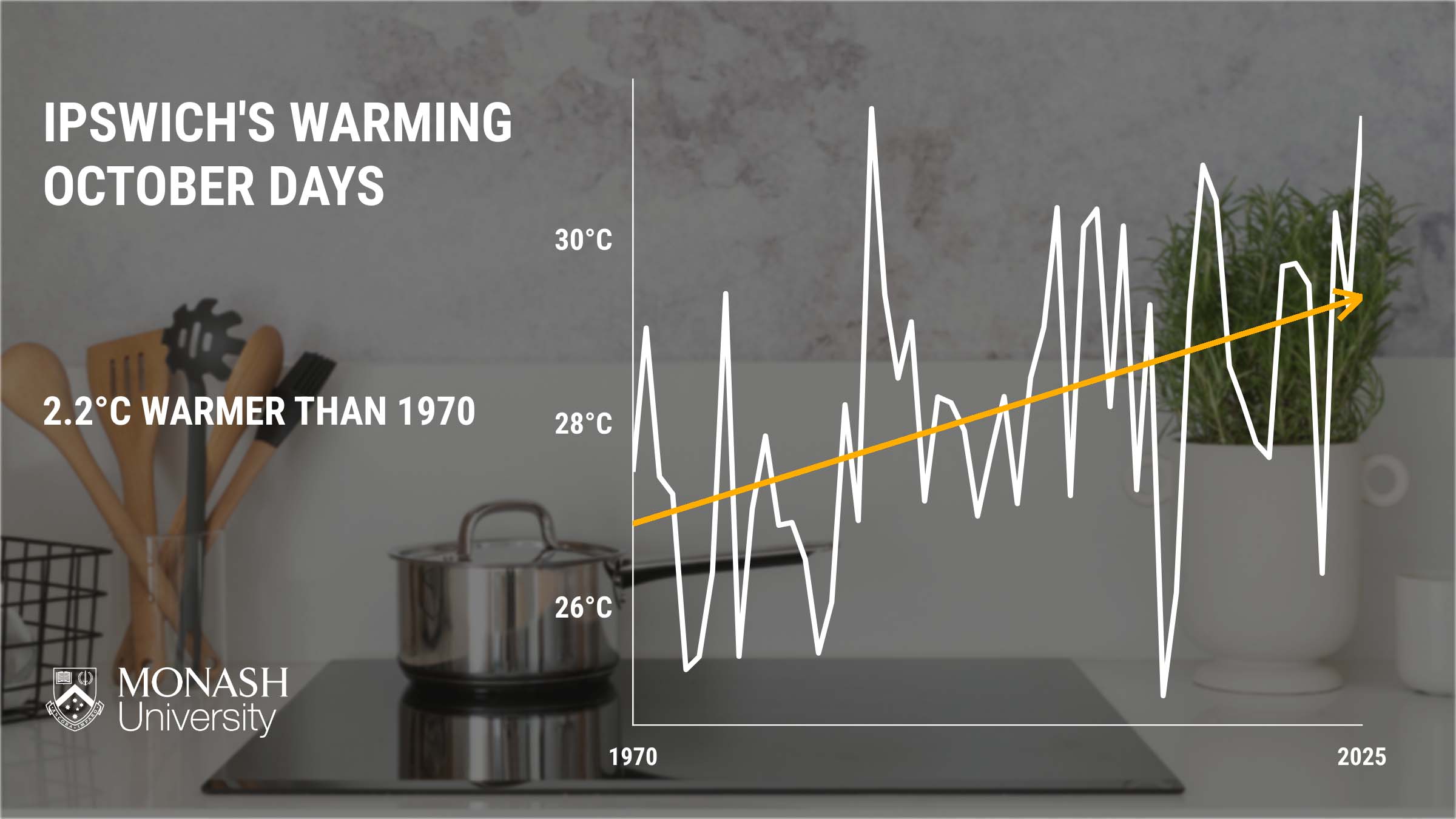 Here in Ipswich the average October day is now around 2.2C warmer than 55 years ago.