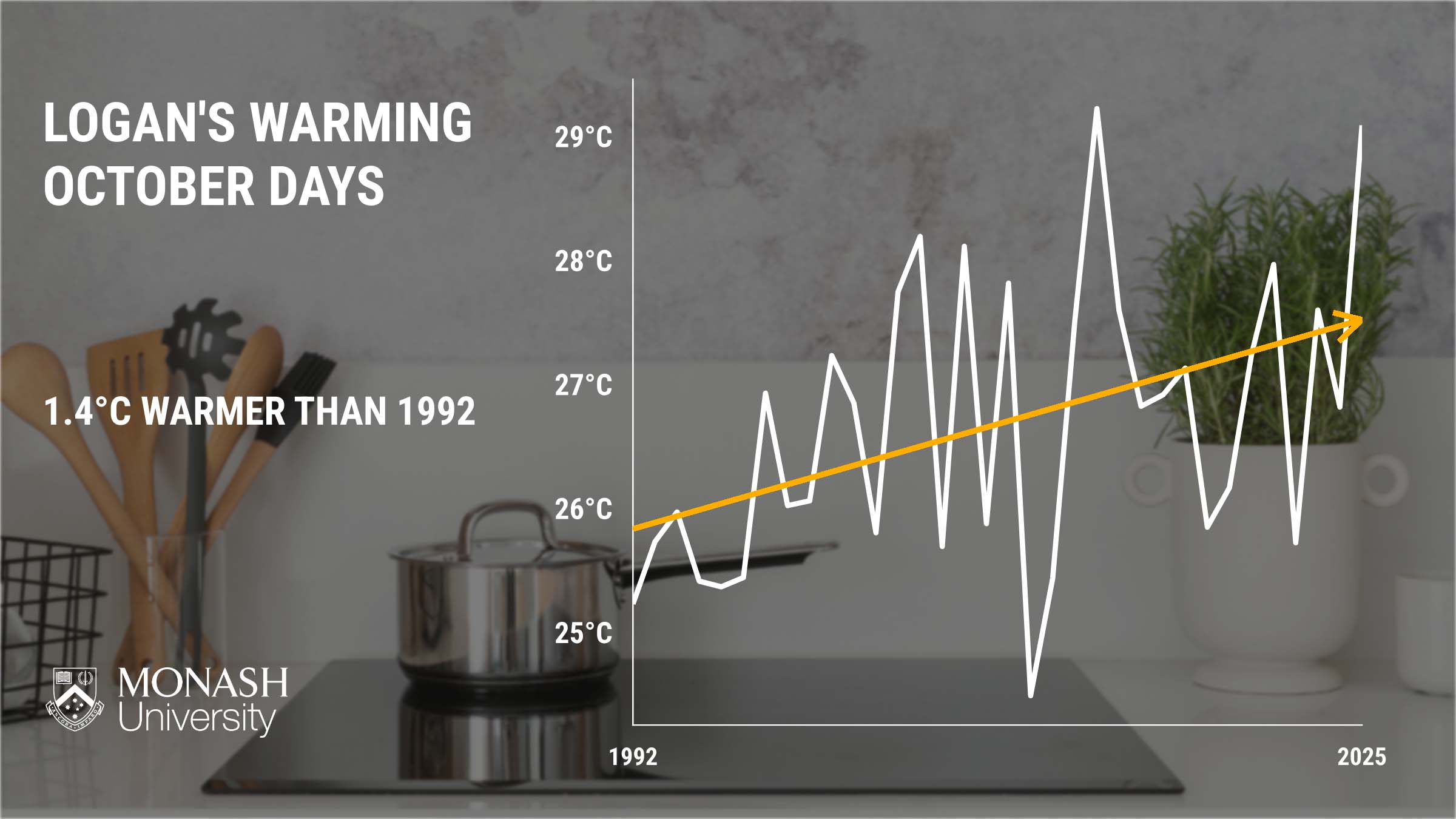 Here in Logan the average October day is now around 1.4C warmer than 35 years ago.