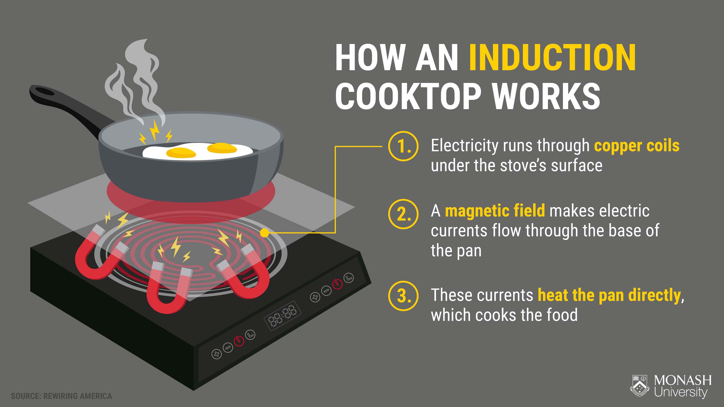 Induction stovetops heat pans directly through magnets, boiling a litre of water nearly twice as fast as gas.