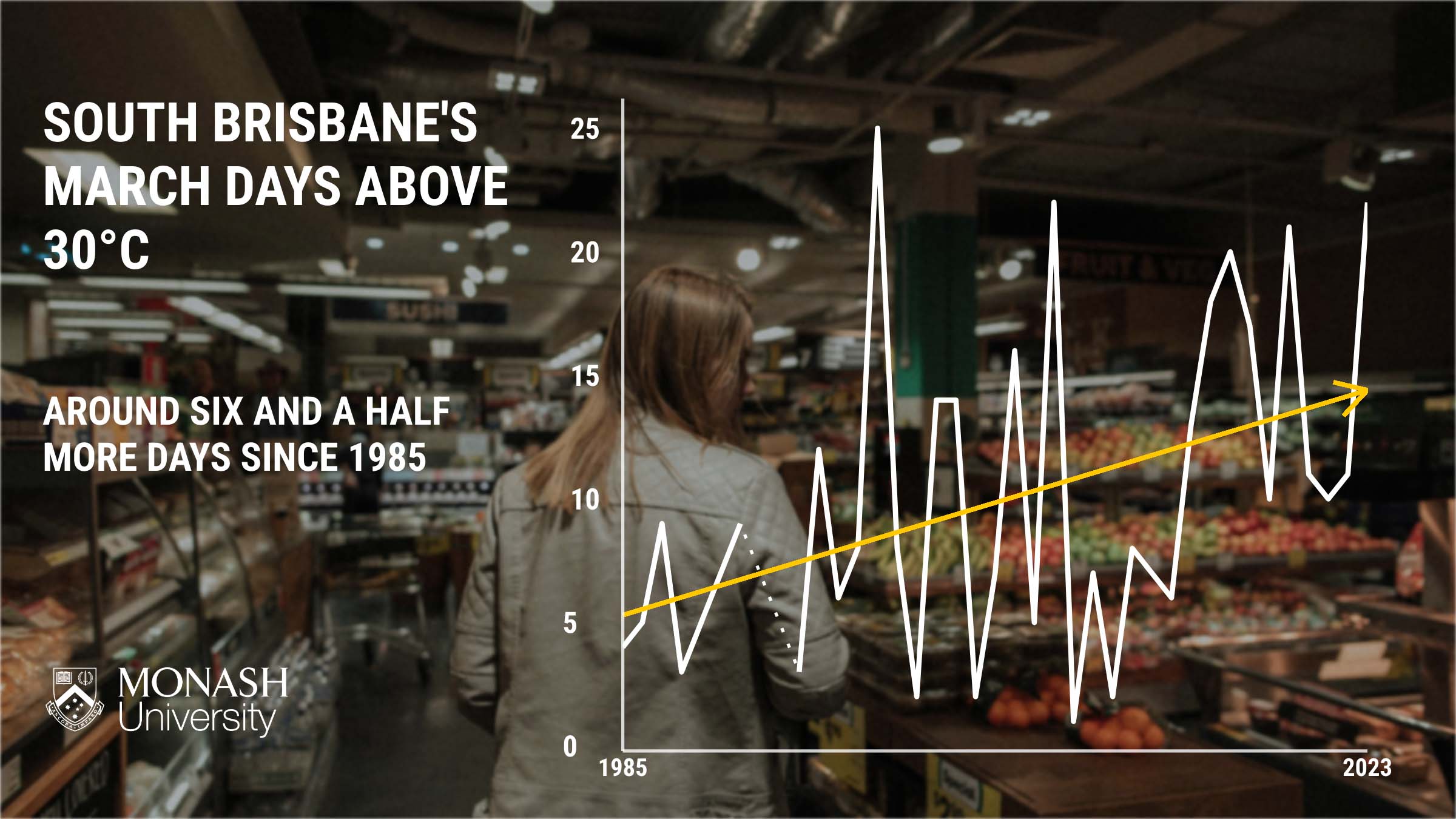 For example, south Brisbane now experiences around six and a half more March days above 30C compared to the mid-1980s.