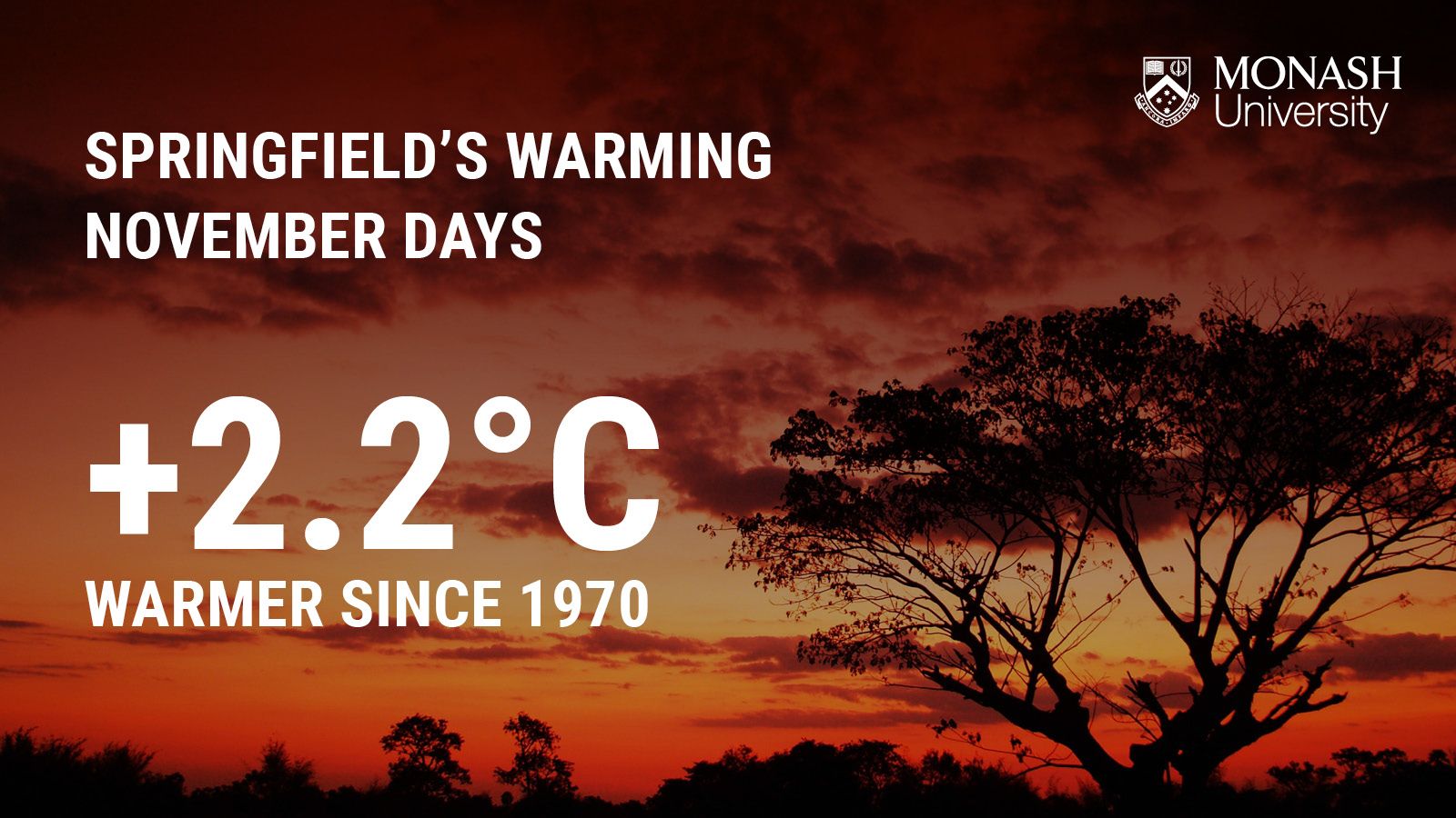 Locally, in Springfield, Bureau of Meteorology (BOM) data shows over the past 50 years, the average daytime temperature in November has increased by 2.2C.