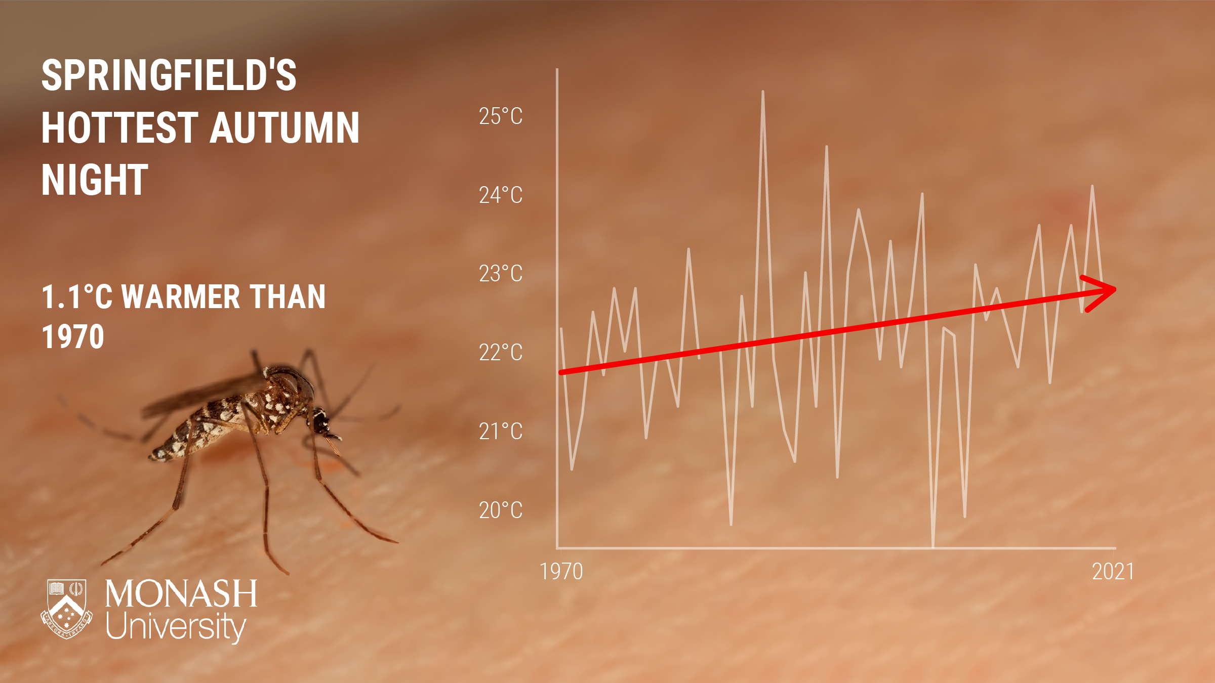 We can see evidence of this warming in Springfield, where the hottest autumn night is now 22.8C – an increase of around 1.1C since the early 1970s.