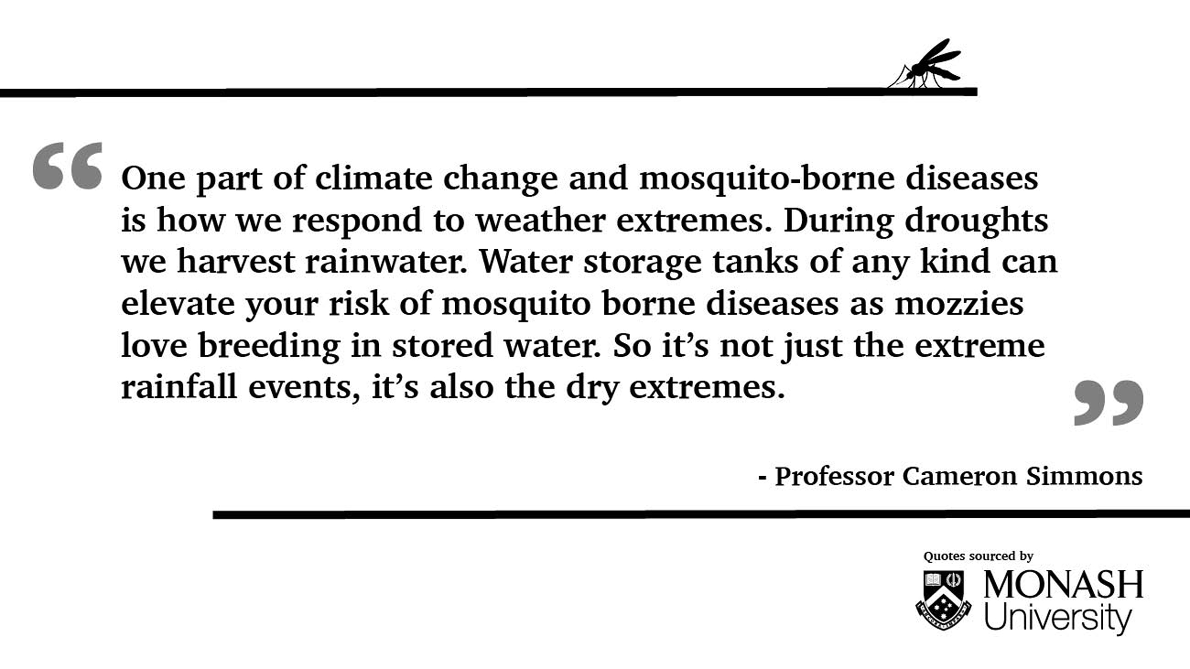 Infectious diseases expert and director of the Oceania Hub at the World Mosquito Program, professor Cameron Simmons, explains how different climate conditions increase the risk of mosquito-borne diseases: