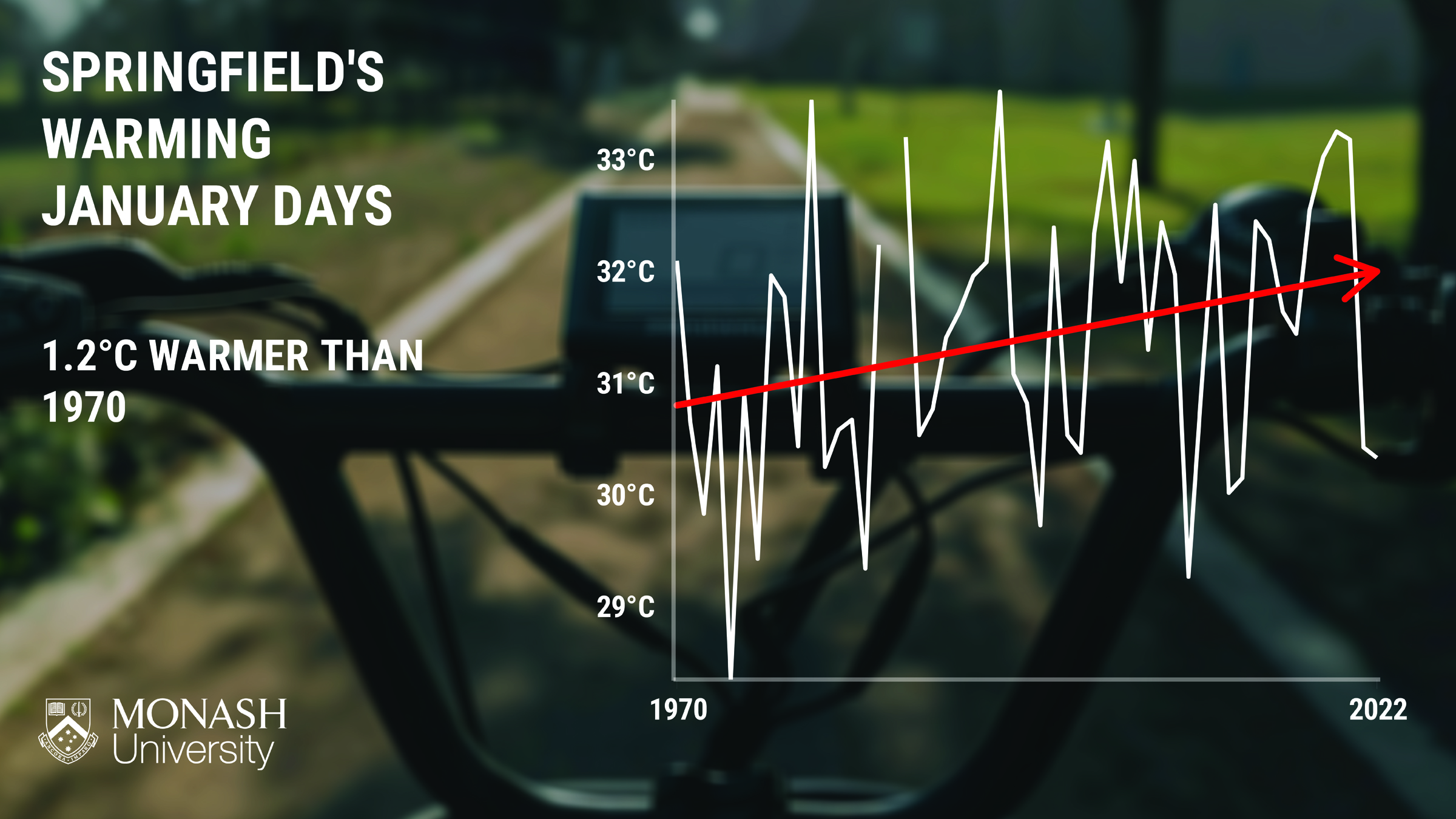 We can see these impacts here in Springfield, where a typical January day is now 1.2C warmer than the early 1970s.