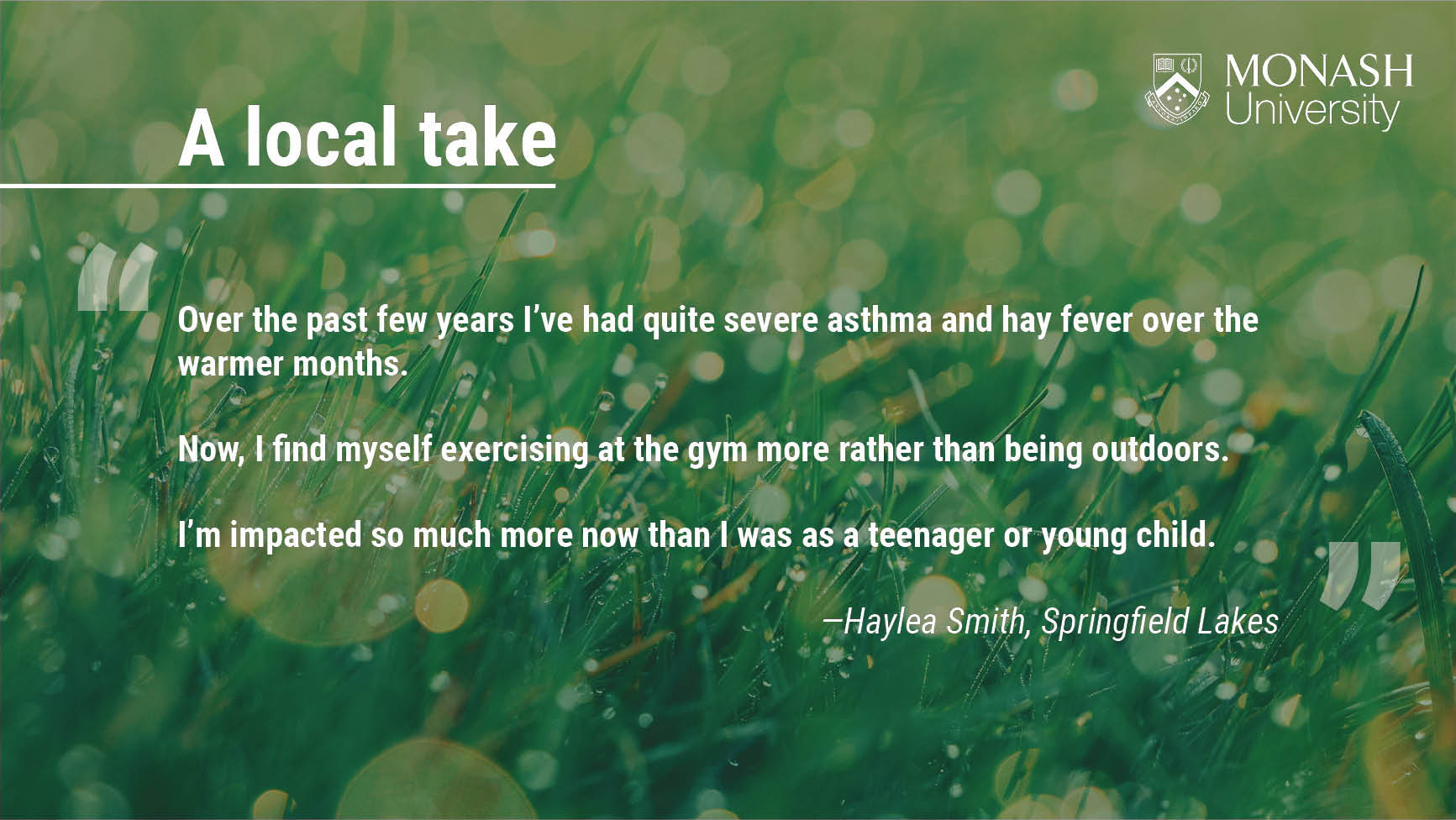 Dr Christa Pudmenzky explains how Springfield's spring climate is changing. Plus, how does climate change impact Aussies suffering from hay fever?