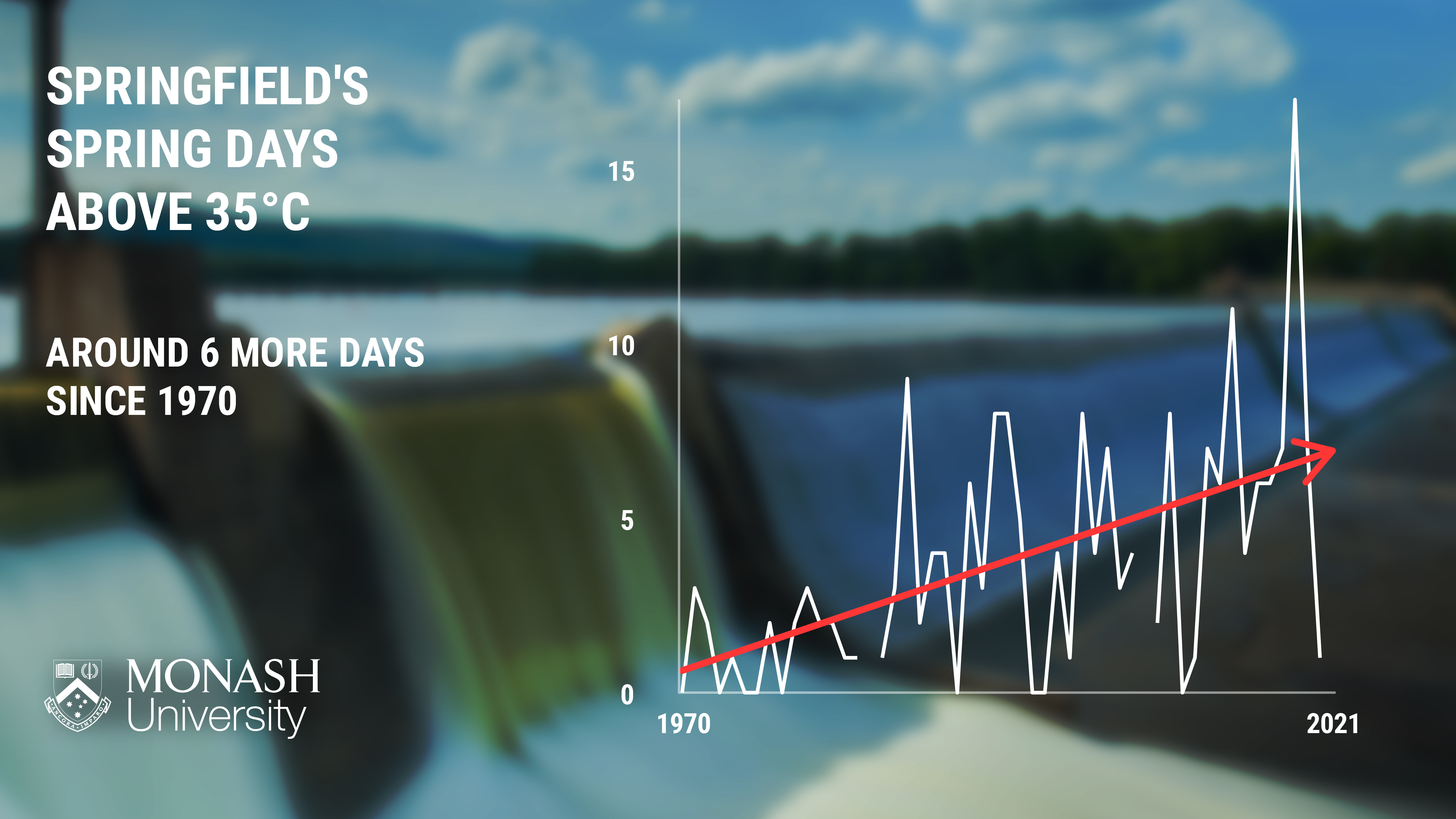 For example, in Springfield, we now experience around six more spring days above 35C compared to the early 1970s.