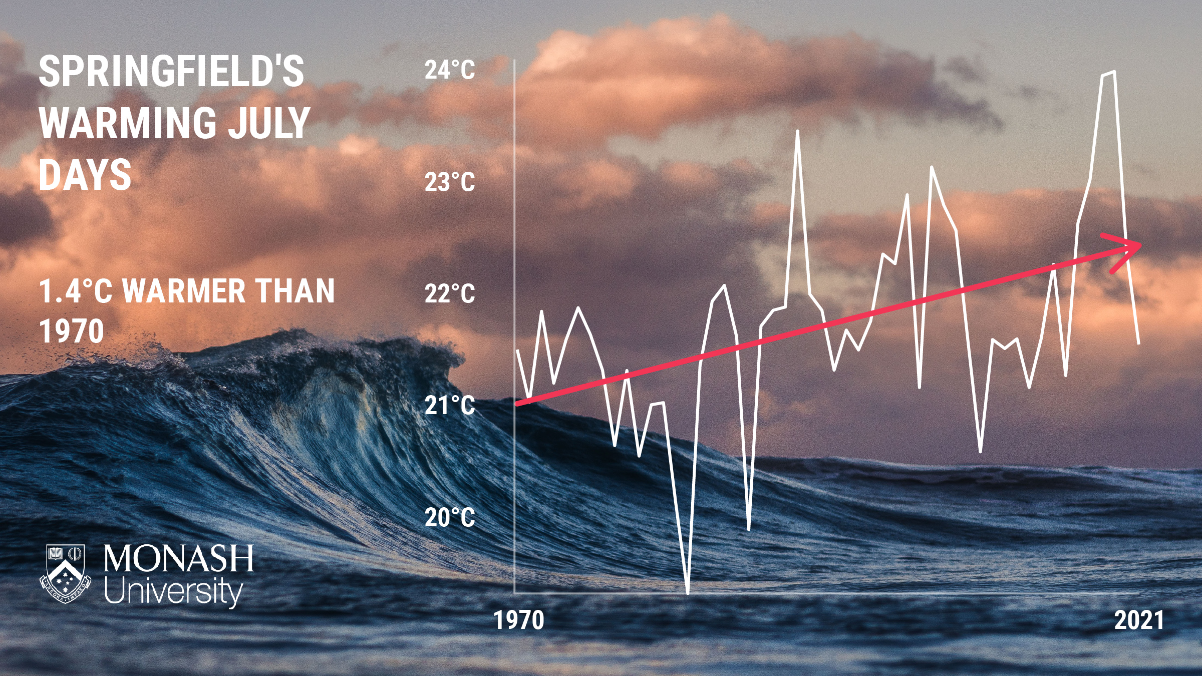 Host of Springfield's Changing Climates series, Dr Christa Pudmenzky, explains how July days are heating up. Plus, a look at the influence of warming on sea level rise.