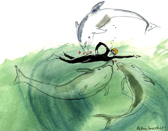 When we got to the beach I’d settled down, and Joni and I marvelled at having swum with dolphins, because dolphins, when they’re identified and certified as dolphins and not masquerading as nightmares, are mystical, otherworldly creatures. We spangled and fizzed with the kind of Thoreauvian epiphany you’d pay big money for at a Queensland water world. And I was confident Joni didn’t know, and would never know, of my brief, aborted, desertion of her. (She doesn’t read The Age.)